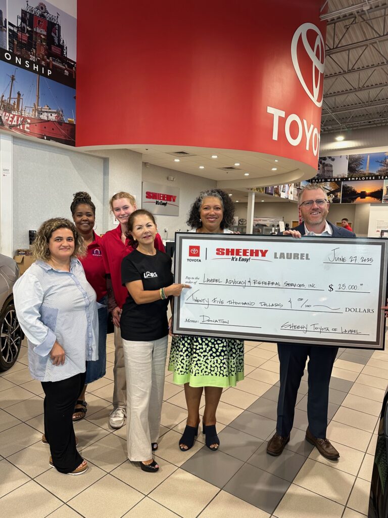 Sheehy Toyota of Laurel proudly continued its commitment to community support with a $25,000 donation to Laurel Advocacy and Referral Services, Inc. (LARS)—marking the fourth consecutive year of partnership with the local nonprofit.